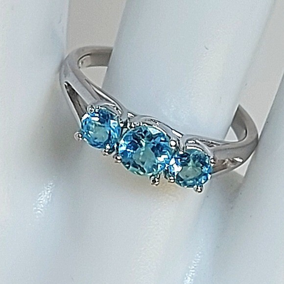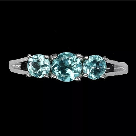 Natural Blue Apatite 5mmβ€Ž 14K White Gold on 925 Sterling Silver Ring Sz 7.5