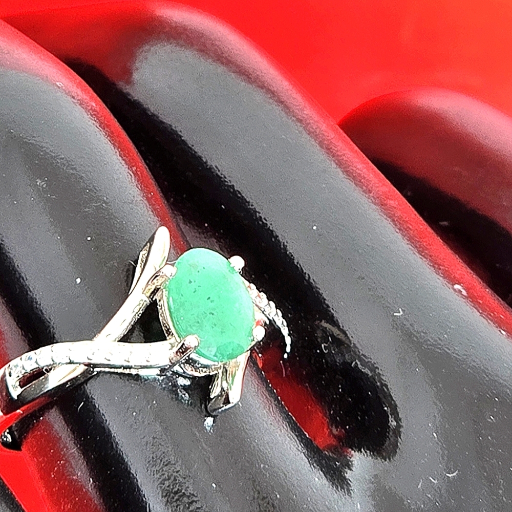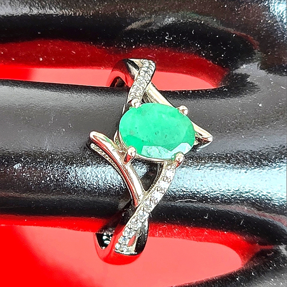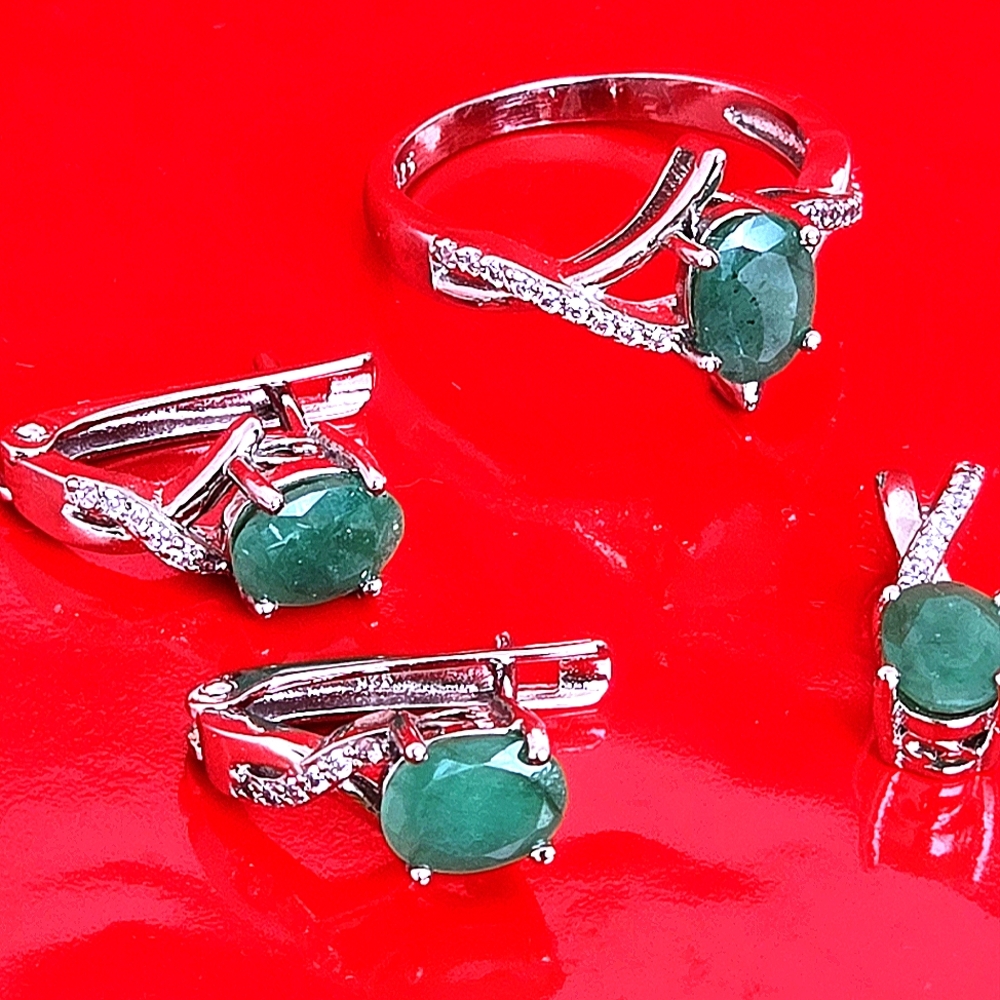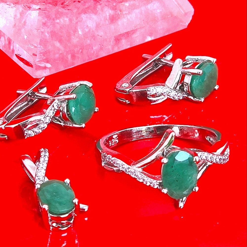 Be the first to review “Natural Emerald & CZ 925 Sterling Silver Set: Ring, Earrings, Pendant”