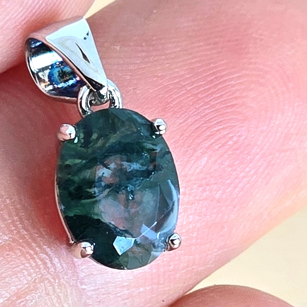 Natural Moss Agate 7x9mm 925 Sterling Silver Pendant