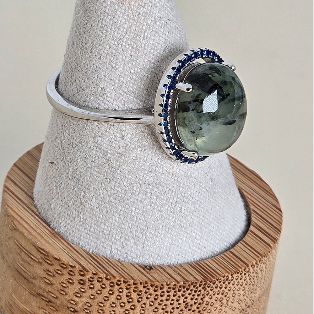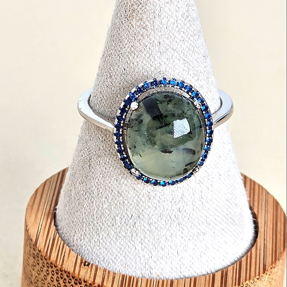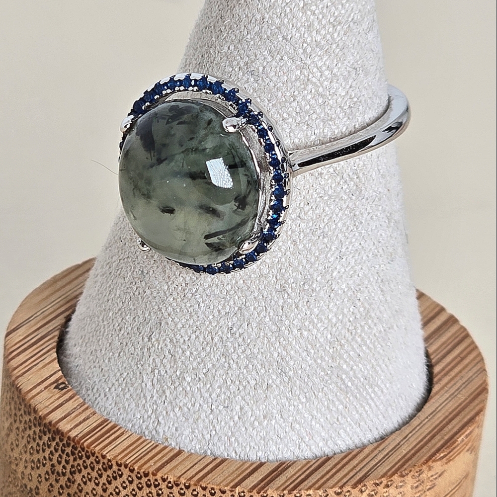 Natural Moss Agate & Nano Crystals 925 Sterling Silver Ring Sz 8