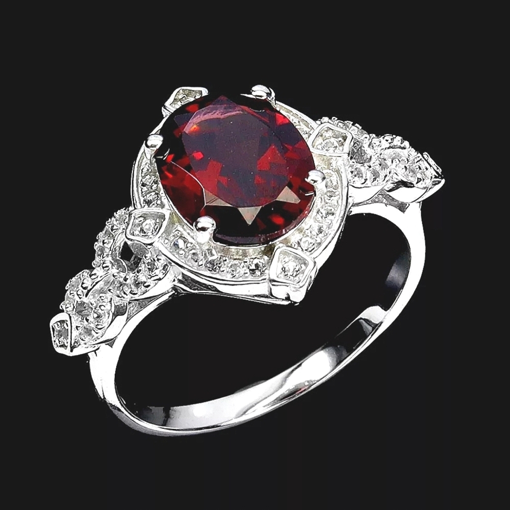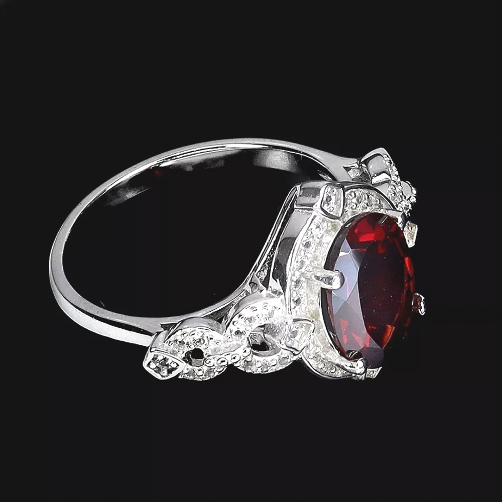 Natural Mozambique Garnet 10x8mm & Topaz 925 Sterling Silver Ring Sz 7.5