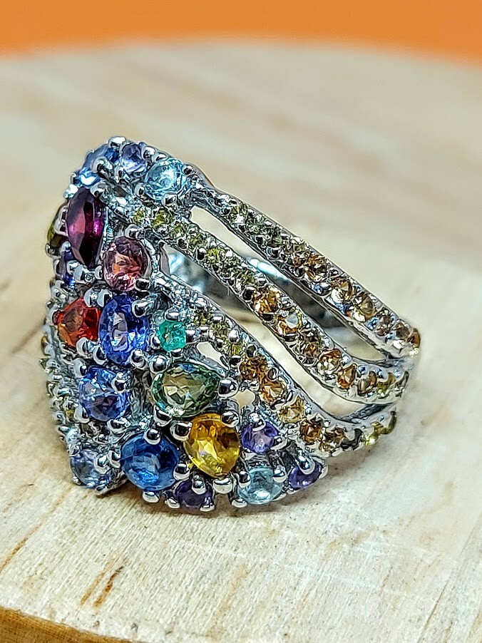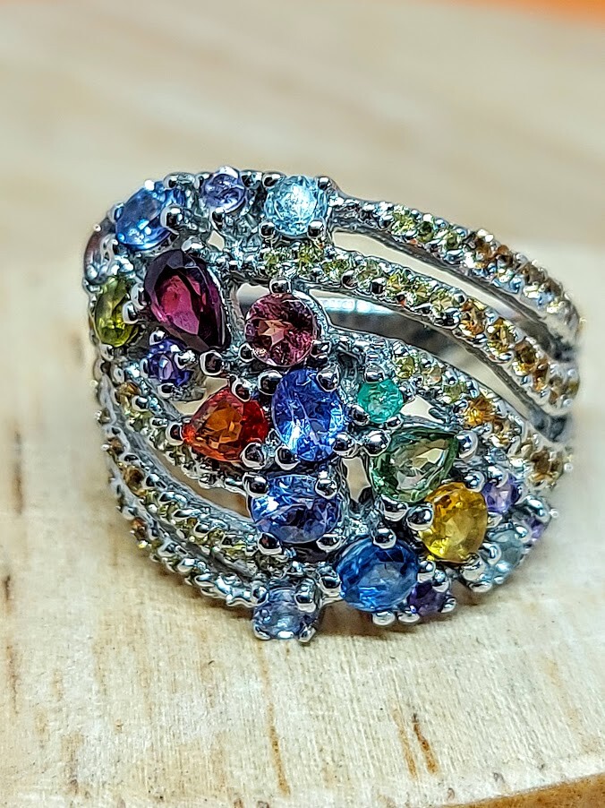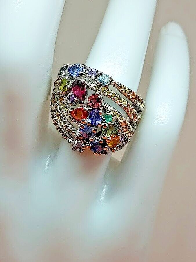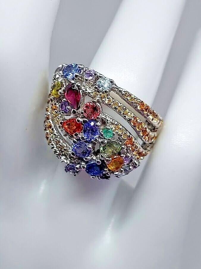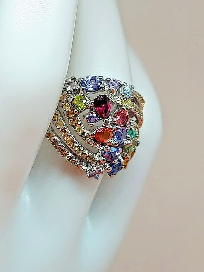 Natural Rhodolite Garnet, Emerald & Kyanite Gems 925 Sterling Silver Ring Sz 7.5