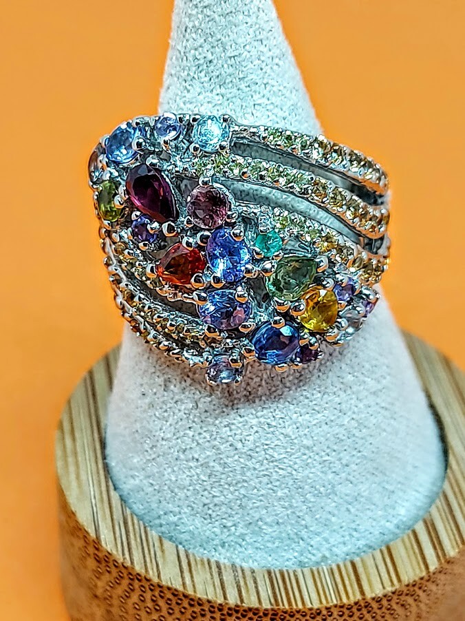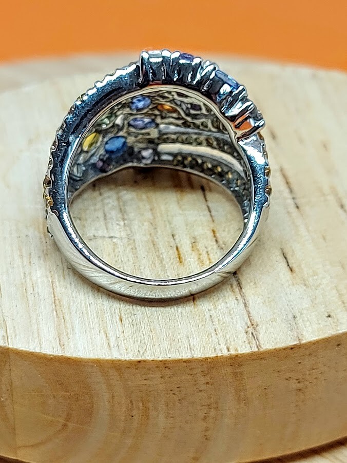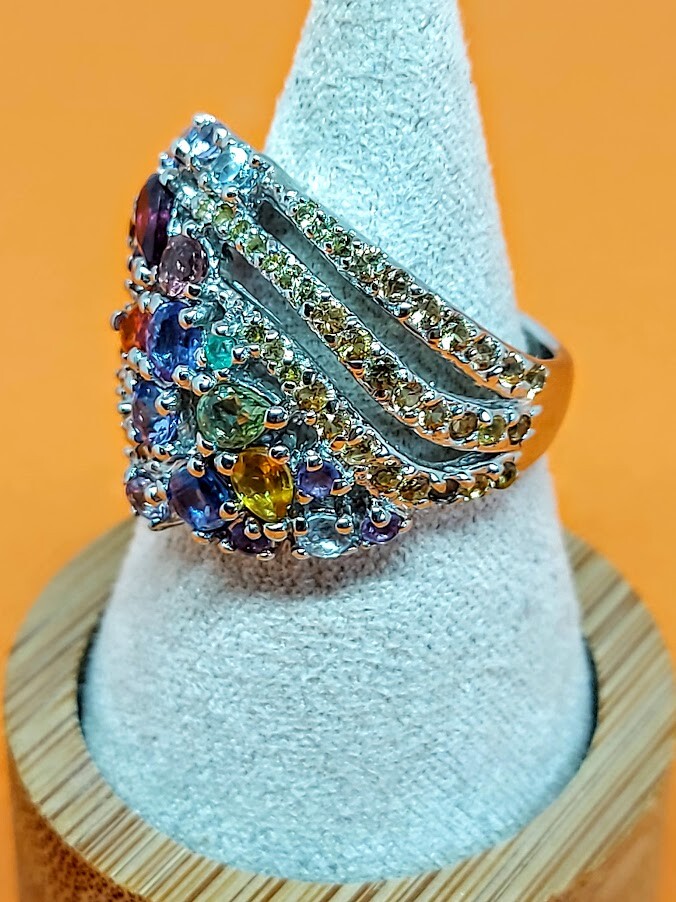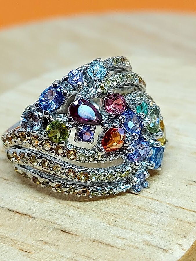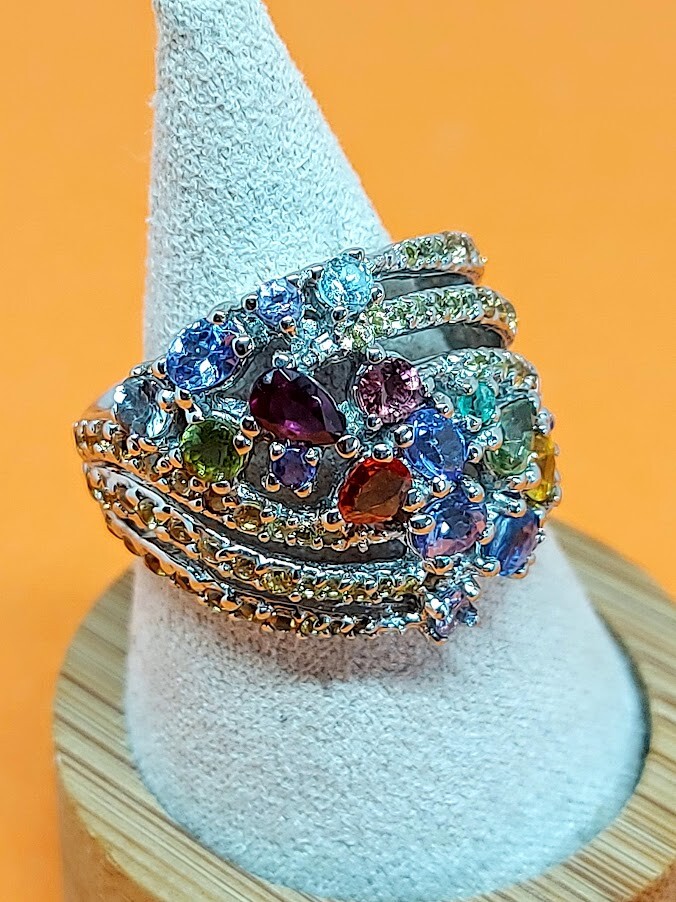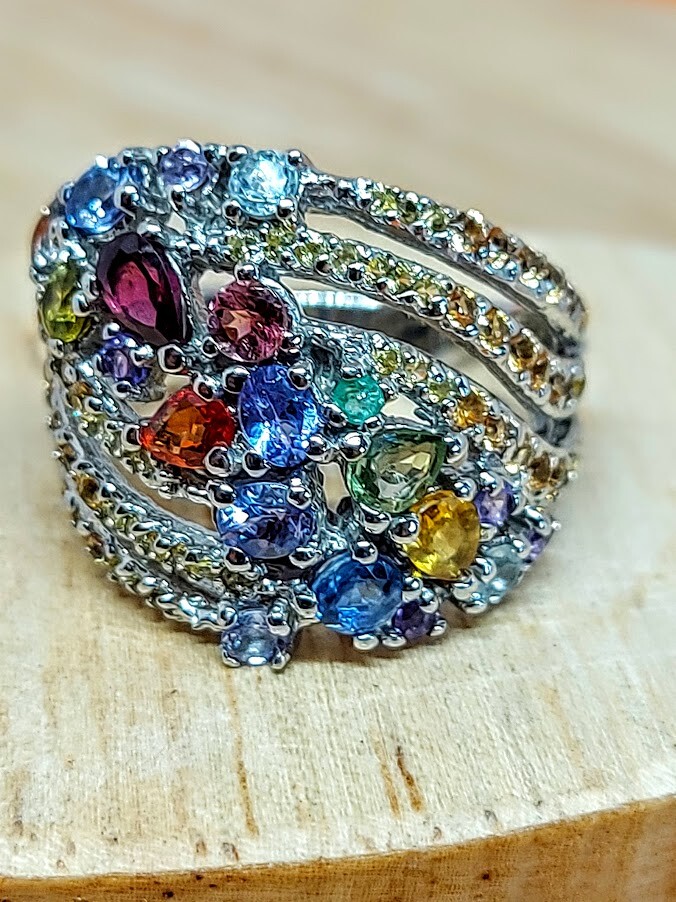 Natural Rhodolite Garnet, Emerald & Kyanite Gems 925 Sterling Silver Ring Sz 7.5