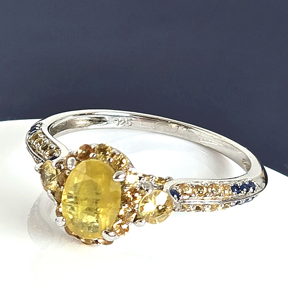 Natural Yellow Sapphire 6x4mm 925 Sterling Silver Ring Sz 7.5